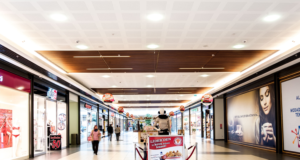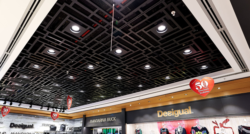 EURACON i TACER specjalizują się w produkcji sufitów podwieszanych metalowych dla centrów handlowych